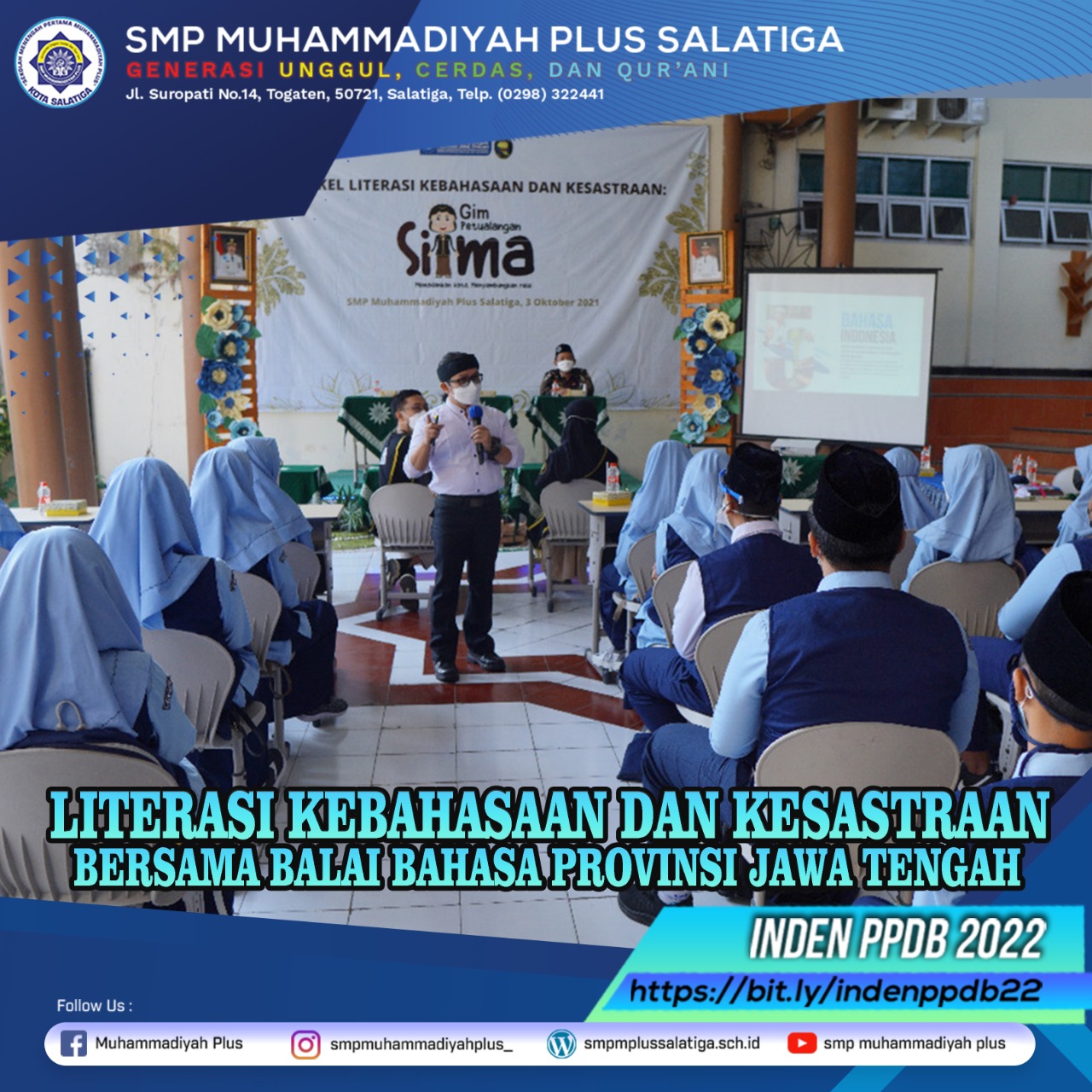 Tiga puluh siswa SMP Muhammadiyah Plus Salatiga melaksanakan kegiatan Bengkel Literasi Kebahasaan dan Kesastraan bersama dengan Kepala Balai Bahasa dan Duta Bahasa Provinsi Jawa Tengah Minggu, 3 Oktober 2021.