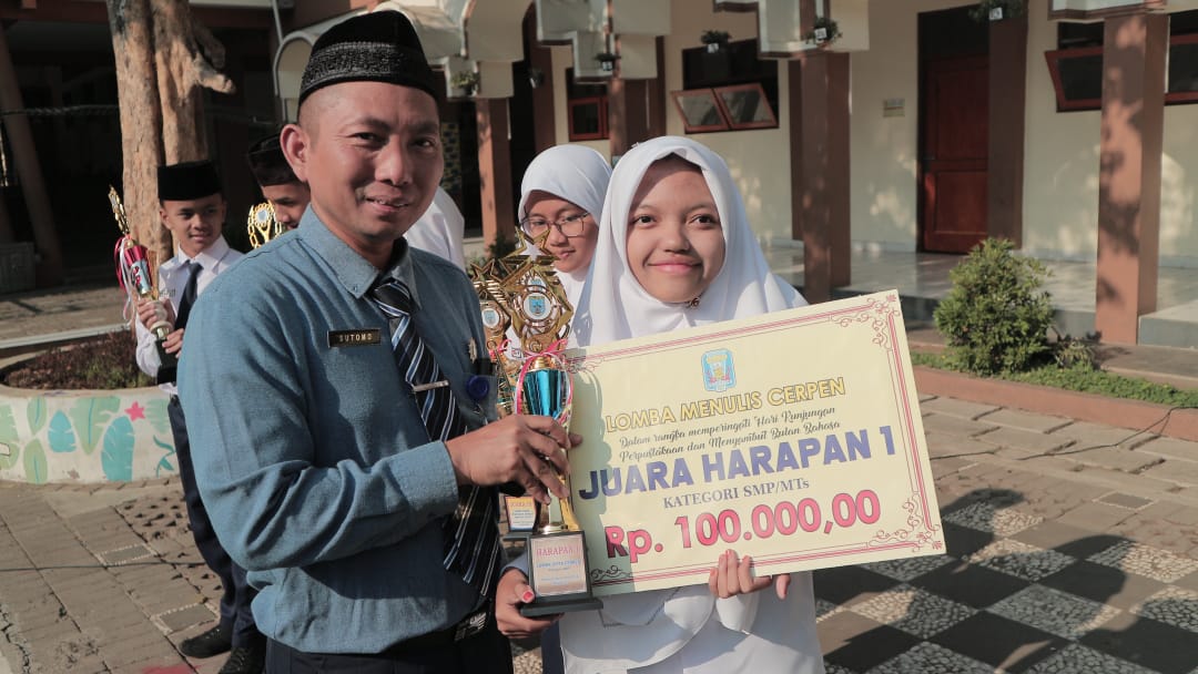 Hasna Fairuzza Fathina siswi kelas VIII SMP Muhammadiyah Plus, berhasil mendapatkan juara harapan 1 lomba menulis cerpen Tingkat SMP/MTs se-Kota Salatiga.