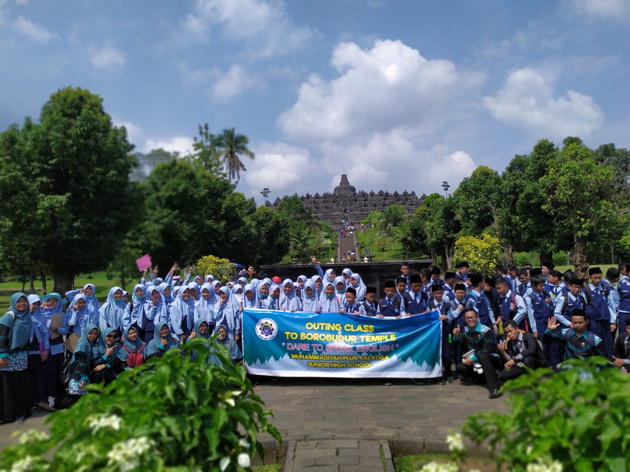 Kegiatan outing class ke Borobudur adalah agenda rutin tahunan SMP Muhammadiyah Plus Salatiga yang diperuntukkan untuk siswa kelas VII. Selain mengenalkan tempat wisata bersejarah, tujuan utama kegiatan ini adalah untuk mempraktikkan kemampuan komunikasi Bahasa Inggris siswa. Siswa dituntut untuk mencari minimal satu orang turis asing yang akan dijadikan narasumber.