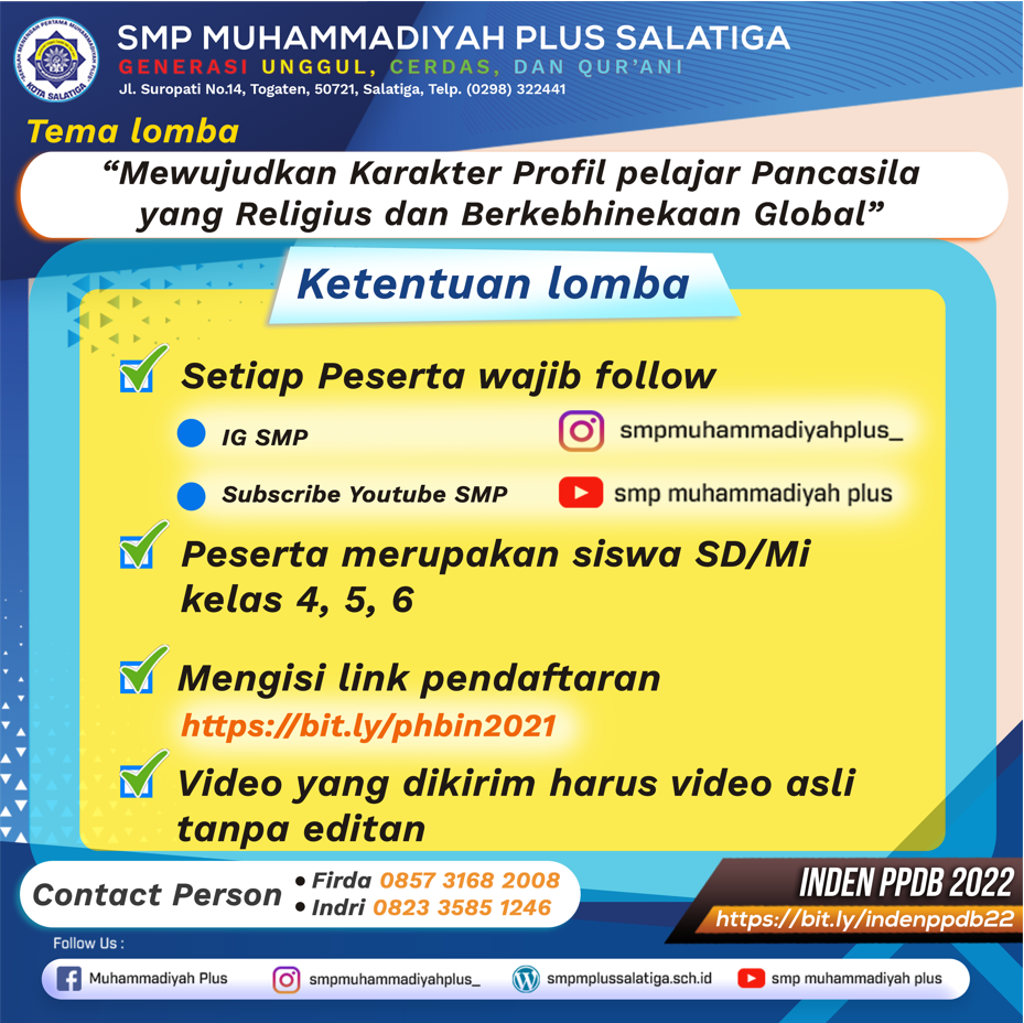 - Semua karya video peserta akan menjadi hak milik SMP Muhammadiyah Plus Salatiga