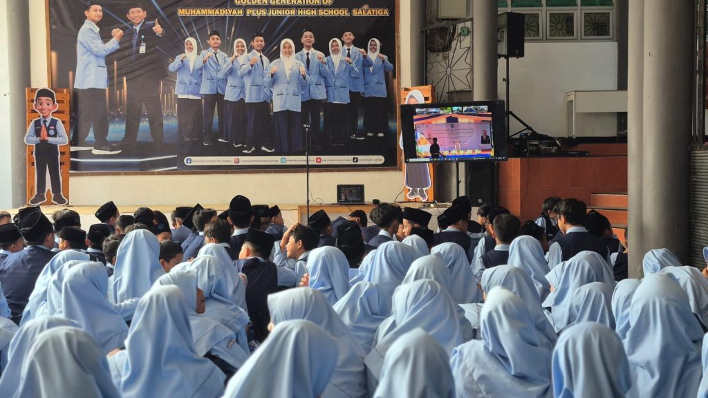 Selasa, 29 Juli 2025 Seluruh siswa kelas VII SMP Muhammadiyah Plus mengikuti Launching Gerakan Salatiga Menabung dan Peningkatan Literasi Keuangan yang diselenggarakan oleh Tim Percepatan Akses Keuangan Daerah (TPAKD). Kegiatan ini dilaksanakan secara hybrid; daring dan luring. Seluruh siswa kelas VII SMP Muhammadiyah Plus menghadiri secara daring di Aula sekolah.