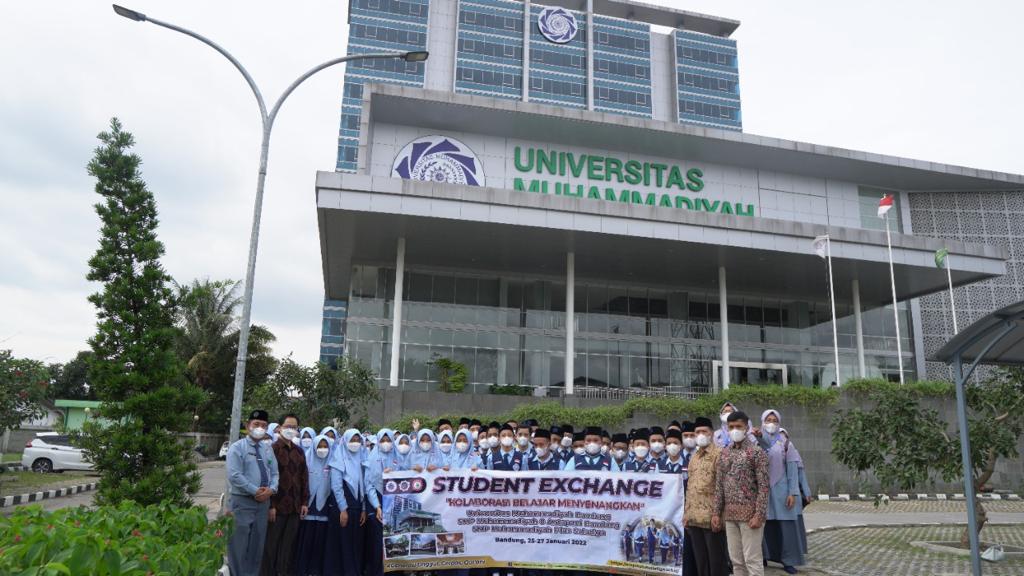 Kegiatan Student Exchange merupakan salah satu program unggulan di SMP Muhammadiyah Plus Salatiga. Sejatinya kegiatan ini merupakan kegiatan tahunan rutin dengan sasaran siswa baru di SMP Muhammadiyah Plus Salatiga. Namun, pelakasanaannya harus ditunda karena pandemi dan baru dapat dilaksanakan di tahun ini. Pada rangkaian kegiatan tersebut, siswa diajak untuk berkunjung ke universitas Muhammadiyah Bandung (UMB), SMP Muhammadiyah 8 Bandung, dan melaksanakan kegiatan outbond di Agrowisata Cibodas, Bandung.