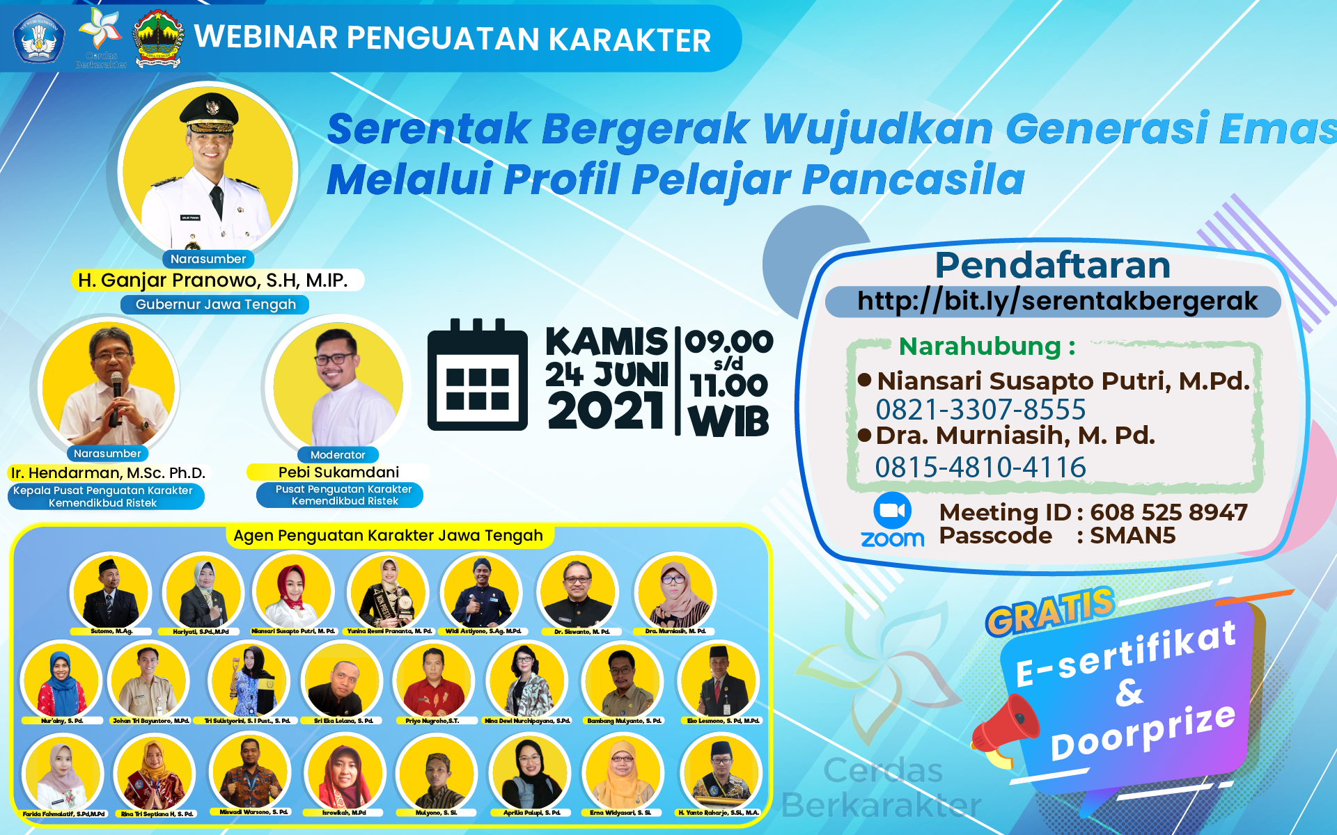 Ikuti Webinar “Serentak Bergerak Wujudkan Generasi Emas Melalui Profil Pelajar Pancasila” pada Kamis, 24 Juni 2021 pukul 09.00-11.00 WIB.